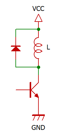 この逆起電力への対策としてダイオードを使うことが多いです。こんな回路図ですね。